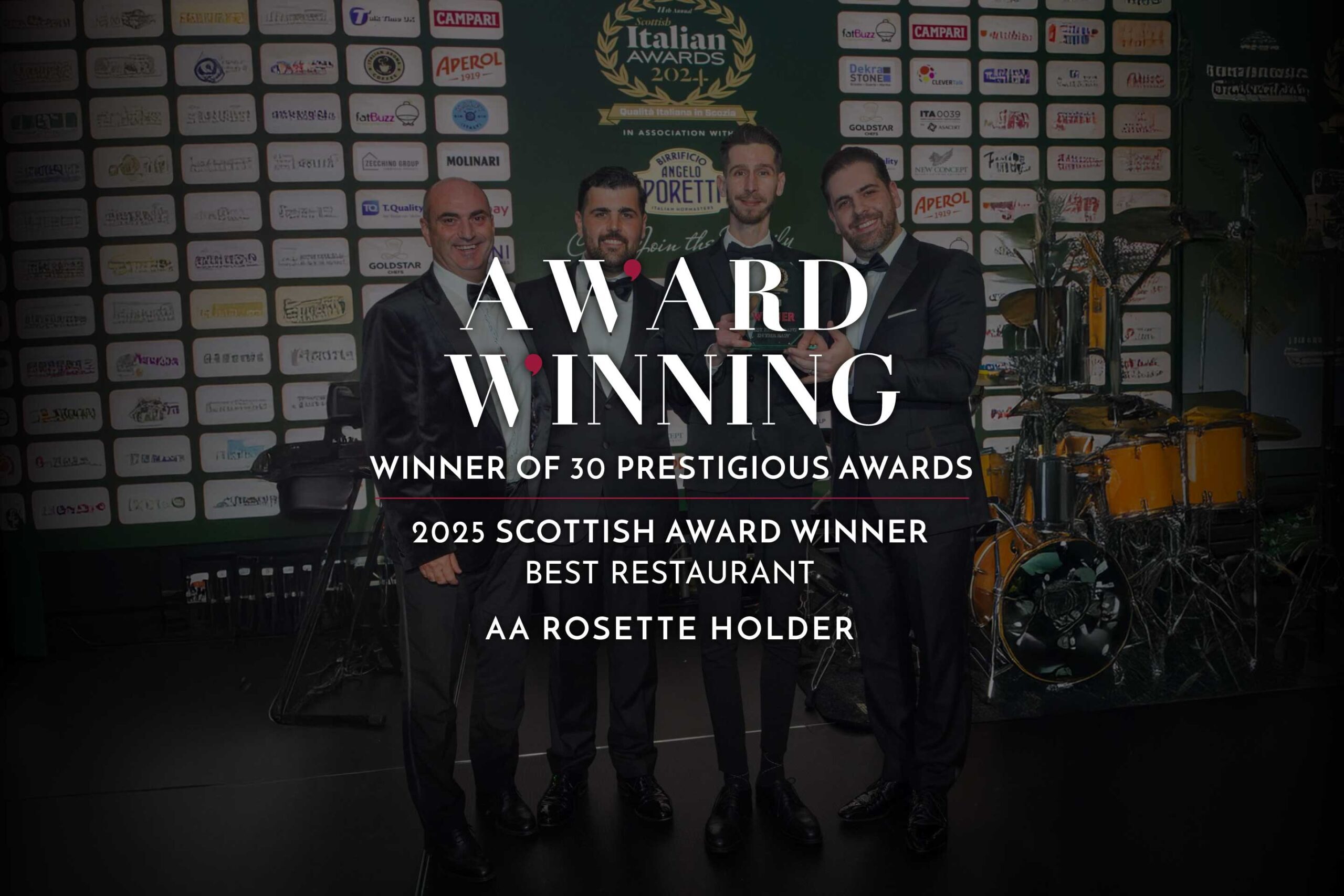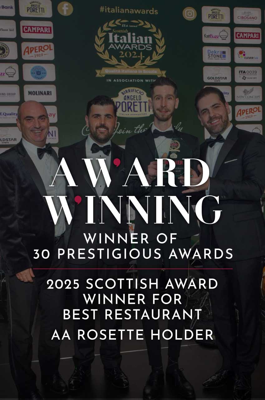 With awards for best wine list and best Italian restaurant in Scotland, you can see what makes us one of the most popular spots for romantic dining and get togethers. Boasting an impressive assortment of world wines, we host regular wine tasting evenings allowing you to sample, appreciate and indulge.